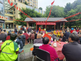 岁岁重阳,今又重阳。为传承尊老爱老传统美德,推动省级贴心关爱型社区创建,成都市邛崃市文君街道渔箭社区以省级贴心关爱型社区创建为契机,培育自组织自治力量,支持渔箭邻里互助队发起“田席坝坝宴 ‘益’起来”微公益项目,以微项目为载体在东城尚都举办大型社区老年人群体坝坝宴活动,用烟火气织密民生关怀网,以互助情激活社区治理活力。本次活动由渔箭社区居民委员会主办,渔箭邻里互助队承办,邛崃市仁爱社会工作服务中心与邛崃市竹溪物业管理有限公司支部委员会协办,聚焦老年群体“物质关怀+精神慰藉”双重需求。