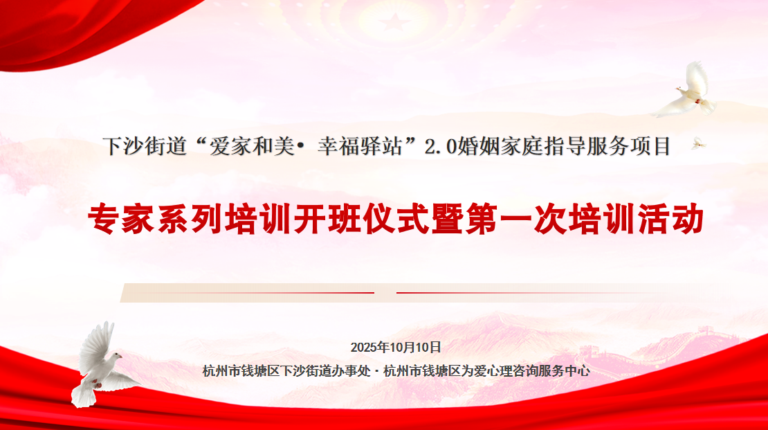 为积极响应 《浙江省家庭教育促进条例》 关于“将家庭教育指导服务纳入公共服务体系”的号召,深度融入浙江省高质量发展建设共同富裕示范区与现代社区建设的战略布局,由杭州市钱塘区为爱心理咨询服务中心支持孵化的“爱家和美・幸福驿站”2.0婚姻家庭指导服务项目在各级领导的支持下,已于10月10日正式启动,标志着杭州市钱塘区在构建现代化基层社会治理体系、深化“家门口”服务体系建设上迈出新的坚实步伐。本项目致力于构建一个“全周期、多维度、专业化”的婚姻家庭支持体系,将优质服务直接输送至社区末梢,为“人民幸福美好家园”的宏伟蓝图夯实家庭这一基础细胞。