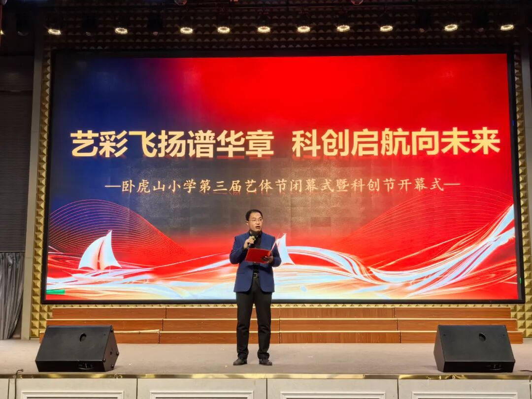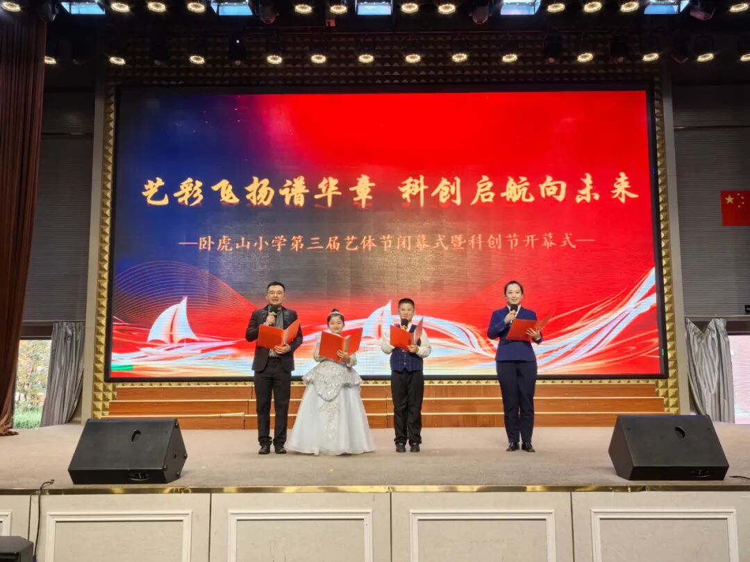 11月3日,卧虎山小学第三届艺体节闭幕式暨科创节开幕式顺利举办,全校师生通过现场参与和观看直播的形式,共同见证这一融合了艺术与科技之美的华彩时刻。