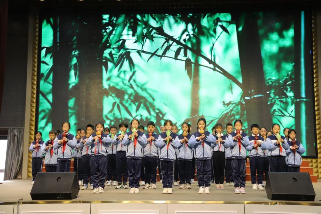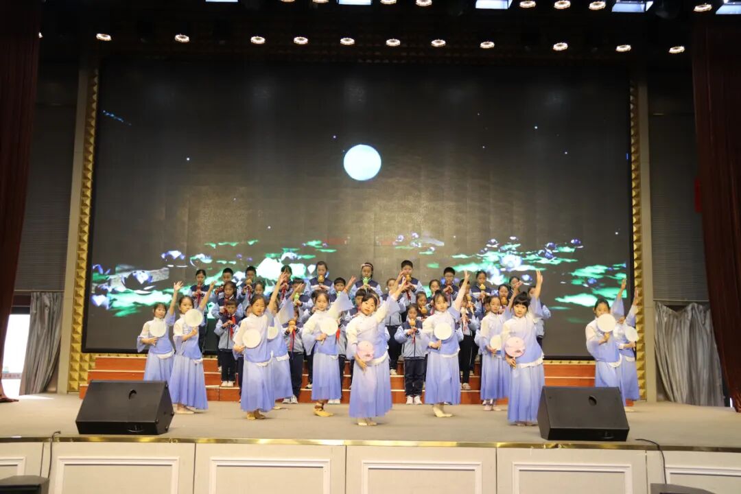 作为卧虎山小学“一级一品”特色课程的优秀成果,四年级“真美级部”带来的葫芦丝合奏《月光下的凤尾竹》韵味悠长,舞蹈《荷塘月色》巧妙融入其中,尽显民族风情。