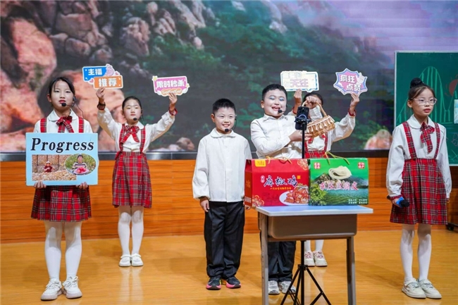课堂展示与成果展演环节,生动诠释了该范式的实践成效。在“多彩四季”英语观摩课上,学生们将语言学习与泰山地域文化相融合,用英语自信表达泰山四季之美;成果展示区内,乡村小学的孩子们用英语演绎泰山皮影戏片段,手持自制英文海报推介家乡文旅资源,展现了新时代少年自信开放的精神风貌。
