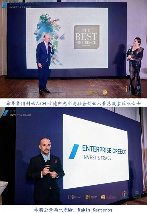 嘉宾发言,希华集团创始人CEO甘德密先生与联合创始人兼总裁索菲亚女士致欢迎词,提及动人故事:“我们做任何事情都是有意义的。建立希华馆的初衷是想要给人们提供善良的帮助,让人们在更美好的地方生活,改善更多人的教育和生活方式,把最好的希腊带向中国及全世界。”