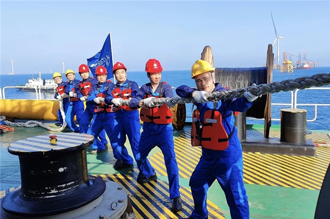 海上“邻里中心”不仅给漂泊在外的船员提供了一个舒适的工作和生活环境,更激发了他们的工作激情,大家干劲十足。今年台风摩羯期间,“海峰1002”主动请缨配合施工队、潜水队进行水下割平台导管作业,并主动负责吊平台到运输船进行海绑焊接作业,为青州海上风电项目如期履约提供坚实保障。