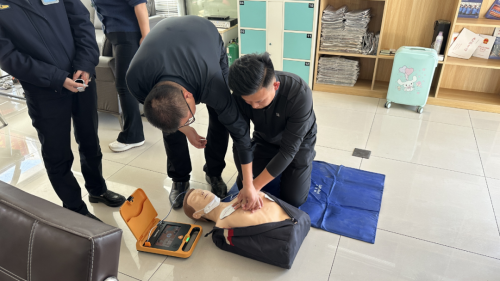 坚持突出“专业指导”与“实操实效”两大关键,主动组织开展应急救护知识培训及现场模拟实训,重点围绕突发心脏骤停的识别判断、心肺复苏(CPR)标准流程、AED设备规范操作等内容讲演结合,逐一拆解、掌握关键操作步骤与急救要领,确保以高仿真、多轮次的实景模拟,为急救服务的有效开展奠定扎实基础。