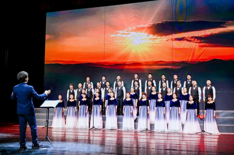 比赛当天,参赛队伍身着统一服装,先后献唱了《祖国不会忘记》和《天耀中华》两首经典曲目。歌声里满含着对祖国繁荣昌盛的美好祝愿,感染了现场每一位观众,赢得了阵阵热烈掌声。