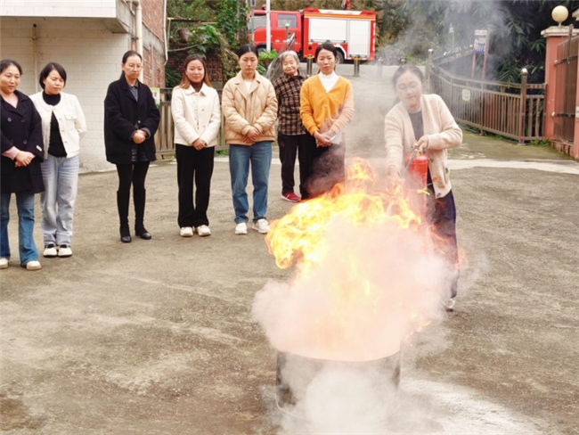 “呜——呜——”下午3时许,消防警报准时响起,演练正式开始。三江新区双城中心幼儿园各班教师迅速反应,按照预定疏散路线,带领幼儿用湿毛巾捂住口鼻,弯腰低姿、快速有序地撤离至操场安全区域。清点人数后,消防大队工作人员现场向全体师幼演示了灭火器的正确使用方法,并邀请教职工代表实操练习,让大家在亲身体验中掌握应急技能。
