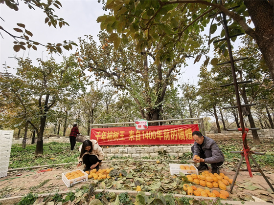 11月5日,保定市满城区神星镇东峪村的千年“福禄寿”柿子王树下迎来丰收盛典,保定市柿界新宠农业发展有限公司正式启动古树果实采摘仪式。这三棵树龄达一千余年的国家一级古树所产果实,将通过精深加工制成“柿界新宠”保定冰柿,于近日全面上市。