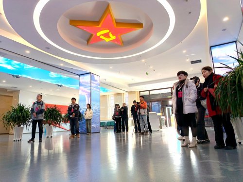 采访团在格尔木市国防教育展示馆。蔡得军摄