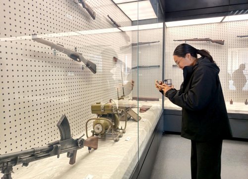 采访团成员在格尔木市国防教育展示馆B馆参观。蔡得军摄