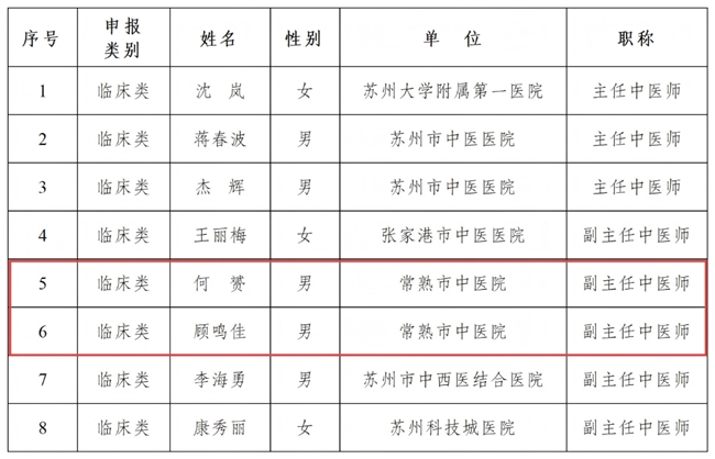 【 喜 讯 】常熟市中医院两位中医师入选第六批全国中医临床优秀人才研修项目培养对象名单