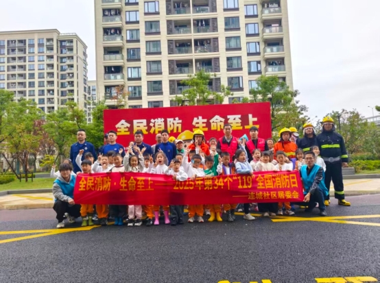 近日,由乔司街道应急消防管理站、乔司街道连城社区居委会、乔司街道连城社区联合工会委员会、乔司街道连城社区关工委联合主办的“全民消防 生命至上”主题活动在荟杰人才公寓成功举办,吉的堡幼儿园小朋友也应邀参与活动。本次活动旨在通过“理论+实操”的全方位体验,全面提升居民的防灾避险与自救互救能力。