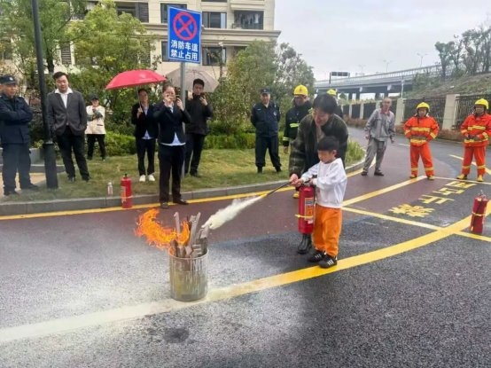 灭火器灭火操作: “提、拔、握、压”,参赛者们面对模拟火源,沉着冷静,熟练掌握了这一项关键的自救技能。这场别开生面的“大比武”,让居民们在亲身体验中,将理论知识转化为肌肉记忆,真正做到了听得懂、学得会、用得上。