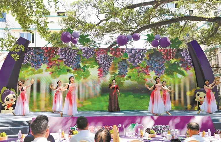 来到寿宁、周宁等地,紫黑的巨峰葡萄、翠绿的阳光玫瑰挂满藤架,空气中弥漫着清甜的果香。以寿宁凤阳为例,当地挖掘自然资源禀赋,做大、做强、做优葡萄产业,葡萄种植规模达万亩,“一粒小葡萄”串起了甜蜜的大产业,成为继茶叶之后的又一富民产业。素有“南国葡萄之乡”美誉的福安市是福建省葡萄栽培面积最大、产量最高、效益最好的葡萄生产基地和中国东南沿海最大的葡萄主产区。现有葡萄种植面积8万亩,年产量12万吨,全产业链产值超35亿元。
