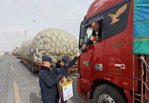 公安检查站警力迅速就位,布设警示标识并引导车辆安全停靠,在严控通行的同时,逐车安抚司机情绪,告知天气与路况预判。为解决滞留人员的饮食急需,民警辅警及时送上方便面与饮用水等物资。“师傅,天冷先吃点,路况好转会立刻通知!”声声叮嘱与切实帮助,让风雪中的乘客倍感温暖。