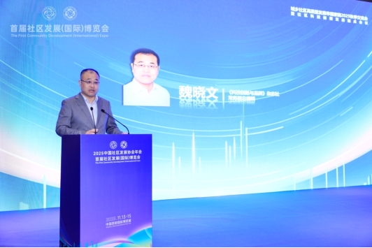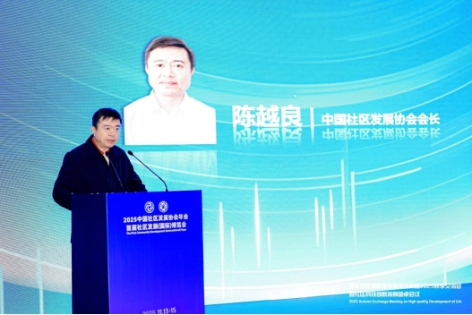 中国社区发展协会会长陈越良为论坛开幕发表致辞,他指出“如何通过科技创新破解社区服务效能不足、服务供给单一等现实难题,为城乡社区高质量发展注入新动能、塑造新优势,是我们共同肩负的时代课题”;