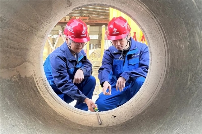 目前,8米长管节成套生产自动化装备已步入试验生产阶段。相比传统4米管节,8米长管节通过减少大管桩拼接缝,既提升了管节整体强度和密封性,又使管桩生产效率提升了30%。