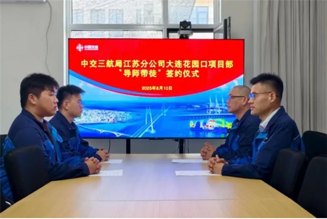 近日,中交三航局大连花园口项目部开展新员工座谈会暨“导师带徒”签约仪式,旨在通过“传、帮、带”方式,帮助新员工快速融入项目集体,提升自身业务能力。