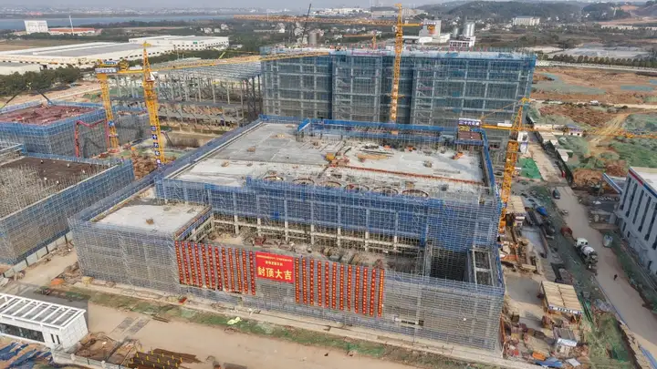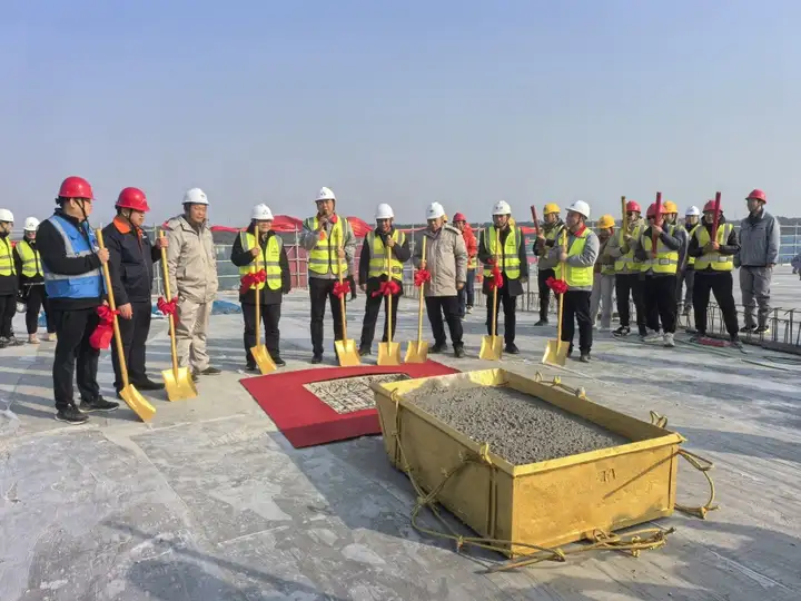 2024年12月18日,随着最后一方混凝土浇筑完成,主车间主体结构提前13天全面封顶。这场关键战役的胜利,为后续设备安装赢得了宝贵时间,也展现出项目团队“特别能吃苦、特别能战斗、特别能攻坚”的铁军精神。