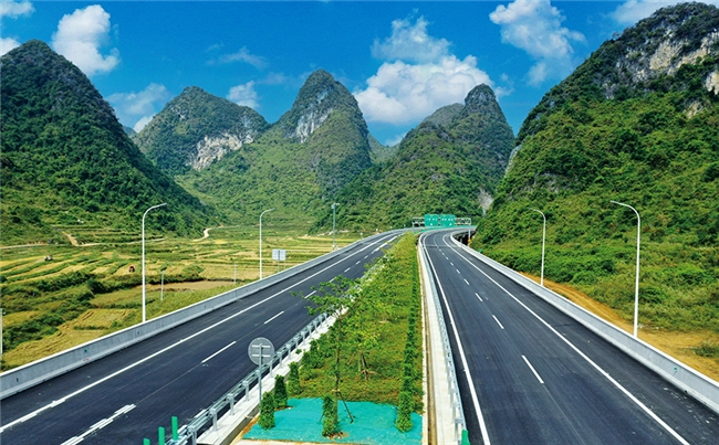 2024年11月15日正式通车的岳圩口岸高速项目位于广西壮族自治区百色市靖西市,全长8.9公里,项目的建设完善了广西通往越南边境口岸的高速网络,使广西出边高速公路通道增至8条,对促进中越合作交流及“一区两地一园一通道”建设具有积极意义。