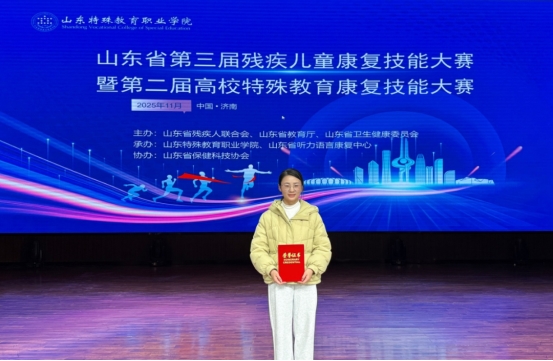 近日,山东省第三届残疾儿童康复技能大赛暨第二届高校特殊教育康复技能大赛决赛圆满落幕。薛城区中医院康复治疗师王晓华作为枣庄代表队的一员,赴济南参赛并凭借出色表现,荣获孤独症康复专业组三等奖。