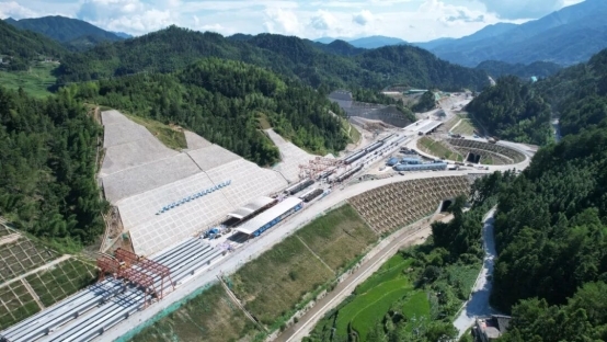 刀背冲大桥以408.9米的身姿飞架深谷,87.73米的高墩矗立陡坡,且受交地时间影响,工期大幅压缩。项目部创新将原“悬臂现浇”方案优化为“预制桥梁”,采用“分级开挖+防护同步”的方案,攻克斜坡陡坎处的施工平台搭建难题,投入超10台特种设备和2台架桥机同步作业,最终实现10个月全幅贯通的建设速度。