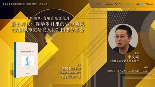 11月22日,以“爵士时代:浮华岁月里的城市新风”为主题的图书分享会在上海图书馆顺利举办。本次分享会为上海图书馆“乐听阅享·音响音乐文化月:Art Deco时代的爵士回响”系列讲座之一,邀请上海师范大学世界史系教授李文硕携其作品《美国城市史研究入门》,与读者一同通过音乐、电影、历史图片等资料,领略一个真实而鲜活的“爵士时代”。李教授以爵士乐的兴衰串起三座城市,讲述一段非洲裔美国人迁徙、抗争与创造的历史。
