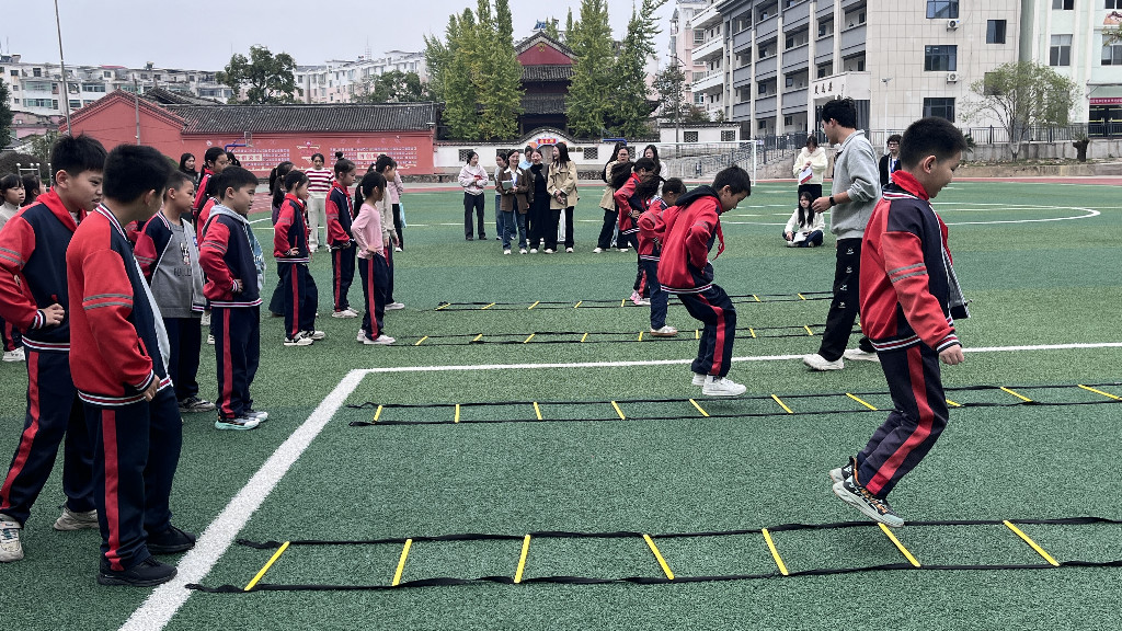 何人玮老师的绳梯训练课,是满场的活力与成长:从最初踩梯时的脚步慌乱、节奏失序,到后来交叉步、跳步的流畅自如,学生们的每一个动作里,都藏着专注与坚持。当成就感漫上孩子们的笑脸,课堂的温度也随之升温。