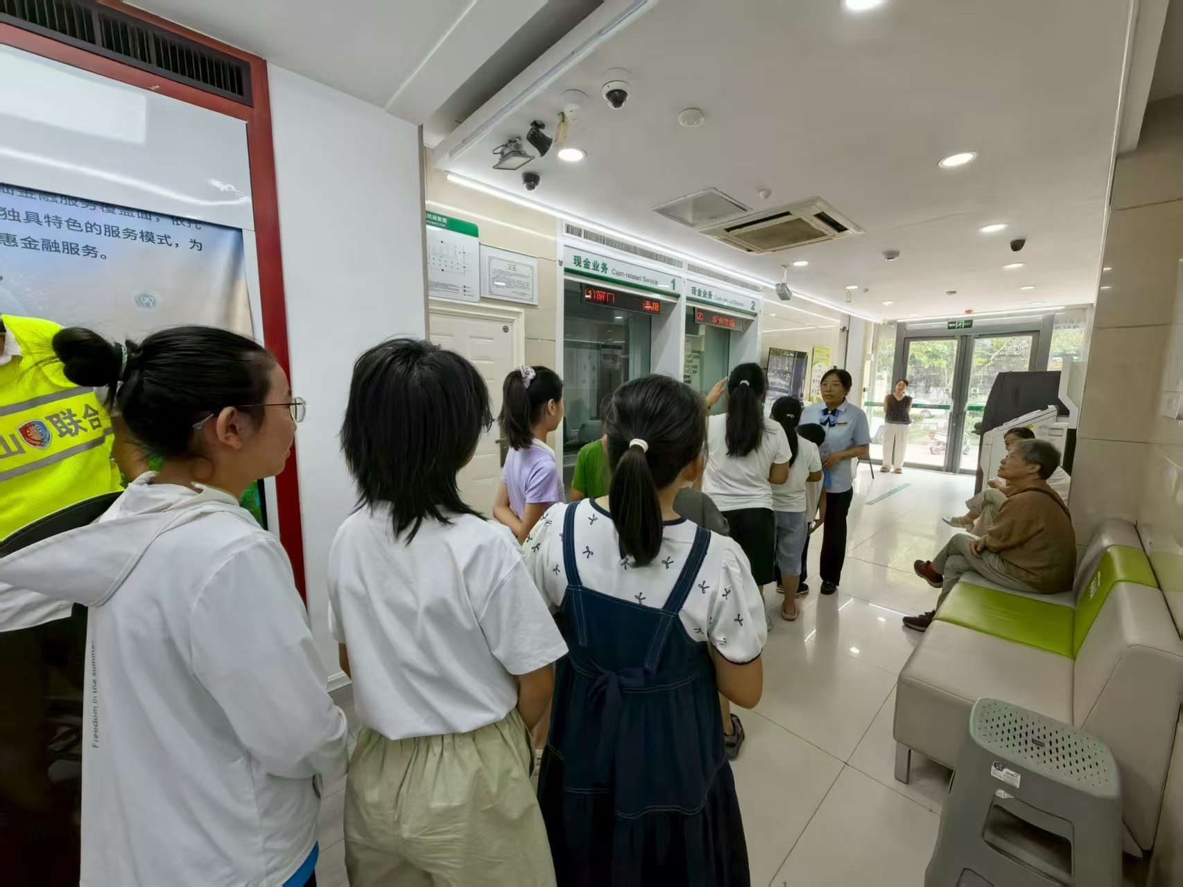 “小小银行家”们在理财经理的带领下,首先依次参观了自助设备、柜台、理财专区等区域,孩子们聚精会神地听着讲解,通过亲自操作,纷纷体验银行卡存取款等相关业务,对银行业务有了初步的了解。