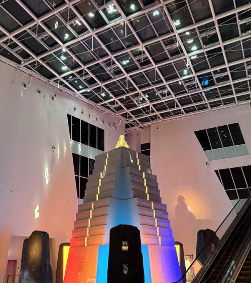 作为上海首个有关中国文字起源的主题大展,展览融合科技与当代艺术创意,以沉浸空间诠释仓颉造字的灵感瞬间与汉字演变的历史轨迹。展区特别打造了“镜面迷宫”“螺旋双眼”“利乡广场”“五色造字台”等艺术装置,观众在穿行之间直面文字的形象与能量,在惊叹中感知文化的厚度与广度。