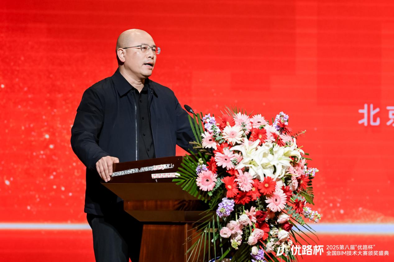 在嘉宾发言环节,优路教育董事长石泰发表致辞。他指出,在当前国家大力推动城市更新与智慧城市建设的背景下,BIM技术作为实现智能建造的核心路径,正与人工智能、大数据等新一代信息技术不断深度融合。“优路杯”全国BIM技术大赛已成功举办八届,始终致力于构建一个开放、共享、高水平的竞技交流平台,有力推动了BIM人才的系统化培养,促进了产学研用的深度融合,为整个建筑产业链与创新链注入了持续活力。