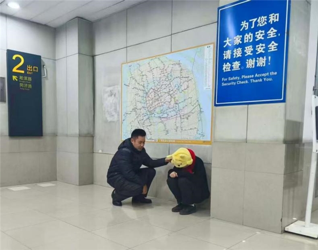 情况有些棘手,于是迅速呼叫了值班站长李叶宾。李站长立刻放下手头工作,快速赶到现场,看到独自蜷缩的女孩,他眼里满是关切。