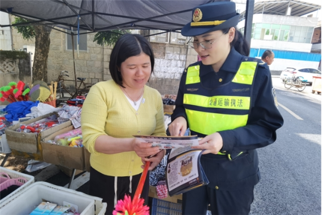 本次“宪法宣传周”期间,支队构建“线上深化学习+线下精准宣讲”双线宣传体系,形成全方位普法格局:线上依托省司法厅全民普法公益大讲堂及支队公众号普法专栏,组织专题学习活动,累计参与952人次,重点学习党的二十届四中全会精神、宪法及法治宣传教育法等核心内容,有效强化执法人员法治素养;线下精准锚定人流密集区域,累计出动执法车辆42辆次、执法人员105人次,开展集中宣传活动28场。通过在受理窗口、服务区等关键点位设置宣传展板5块,依托14处基层窗口LED显示屏滚动播放宣传标语3条,发放宣传材料1157份,发布普法短视频1部,接待群众法律咨询23人次等举措,构建立体式宣传矩阵,营造浓厚法治宣传氛围。