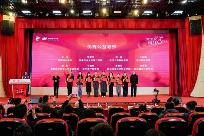 在众人的期待中,颁奖仪式隆重开启。新锐公益个人奖、新锐公益团队奖、新锐公益项目奖、公益典范奖、优秀公益导师奖的获得者依次接受表彰。