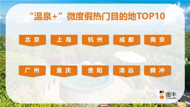 此外,家门口的温泉、汤泉、温泉酒店等也是游客休闲避寒的重要方式。其中,北京、上海、杭州、成都、南京、广州、重庆、贵阳、清远、腾冲等地的温泉、汤泉景区吸引了更多用户的关注。从客群构成来看,温泉、汤泉的消费客群以本地及周边家庭客群为主,主打放松身心、亲子共游的微度假体验。