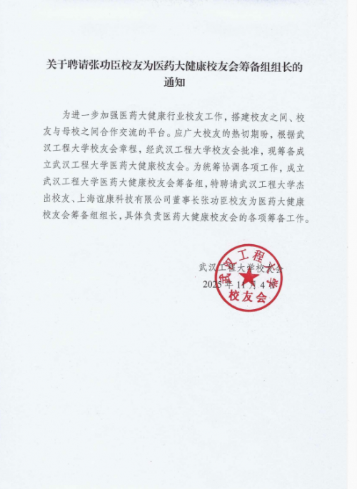 据悉,武汉工程大学医药大健康校友会已初步设立上海、武汉、宜昌等多个区域分支机构,负责人由轮值会长、副会长或副秘书长担任。经费来源包括筹备组与企业家校友赞助、兄弟校友会支持及行业对接收益等,将保障校友会可持续发展。未来,医药大健康校友会将聚焦校友帮扶、校企产学研互动、产品技术推广等核心任务,为国家医药大健康行业高质量发展贡献武工大人的智慧与力量。