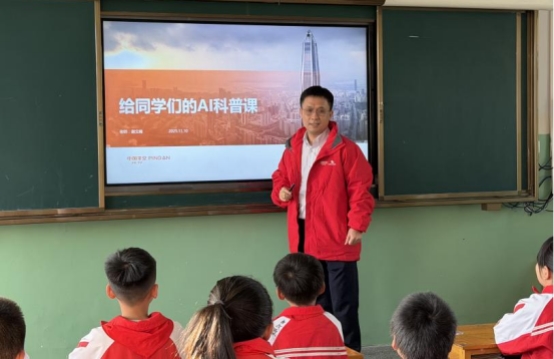 平安产险科技中心数据智能平台团队总经理谢文峰也是本批支教的志愿者之一。他为学生们带去了科技课,从人脸识别、智能语音等场景切入,生动阐释人工智能如何改变世界,并鼓励学生思考如何运用科技解决身边实际问题,希望在幼小心灵中埋下探索未来的种子,引导学生在动手实践中激发科学兴趣、学习科学方法、培育科学精神。