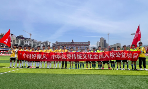 在贵州省黔东南苗族侗族自治州榕江县,项目抓住了“村超”这一全民热点的文化内核,创新推出“村超+家风”公益模式。项目为“班超”青少年足球联赛提供物资支持,更协同当地培训志愿者,将赛事打造成传播团结、拼搏、规则意识等优良家风精神的生动课堂。