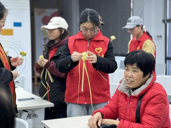 现场氛围温馨而热烈,在互动中传递着非遗背后的文化温度。“看到阿姨们举着作品笑起来的那一刻,我真正理解了非遗的活力,它从未远离生活,而是连接情感与记忆的纽带。”学生党员田慧感叹到。
