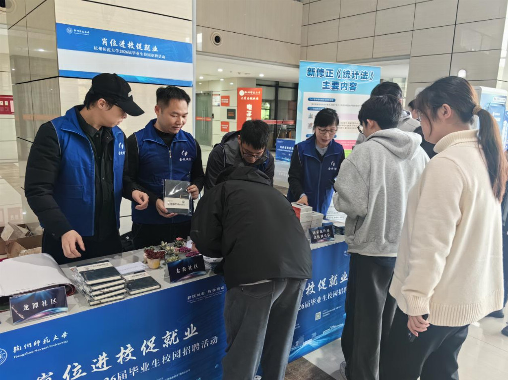 12 月 10 日,太炎社区党群服务中心充分发挥基层治理核心枢纽作用,联合街道经发办、国家统计局余杭调查队,走进杭州师范大学仓前校区,开展普法宣传与反诈警示专项服务,将党群服务触角从社区延伸至高校,体现了党群工作与时俱进、服务需求的前瞻性。