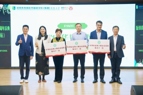 在“中华好家风”主题展巡展接力仪式上,雪象小学、龙外集团云和学校、花城小学的代表依次上台,郑重地从街道妇联余秋婵主席、深圳六和园工作室方伟坤老师及龙外集团和美小学专职副书记,执行校长蒋国军手中接过象征传承的牌匾,正式成为巡展下一站的承办单位。