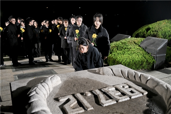 12月12日晚至12月13日凌晨,在宁学生代表接力诵读,铭记历史、祈愿和平。《最后的南京,我的1937》、《金陵大沦陷:南京保卫战影像全记录》、《拉贝日记》、《魏特琳日记》、《江东门的钟声》、《永志不忘 奋发图强》、《不忘历史 矢志复兴》、《把历史痛感转化为奋进力量》……字里行间,传递的是振聋发聩的力量。