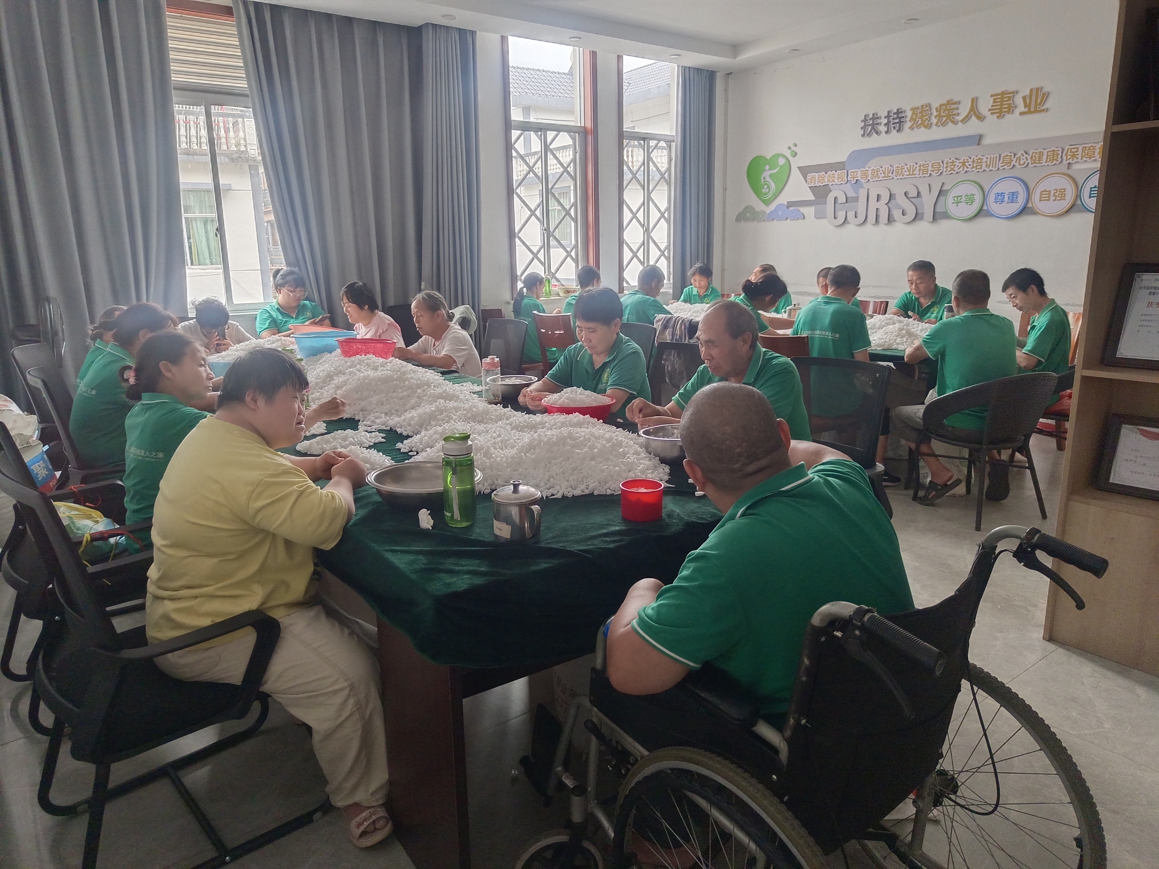 此外,峡口镇还争取到江山市残联的项目支持,两家残疾人之家分别与北京外企人力资源服务有限公司、杭州统一企业有限公司、昊晟兄弟餐饮管理(杭州)有限公司等企业达成合作,共建枫石村、连丰村残疾人就业帮扶基地。基地依托企业强大的安置能力,根据企业用工年龄要求,已安置69名符合条件的残疾人,全年可吸收异地残疾人就业保障金195万元,为残疾人缴纳社保,同时月增收2000余元。