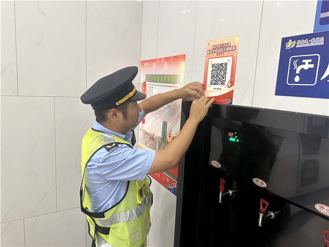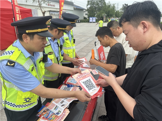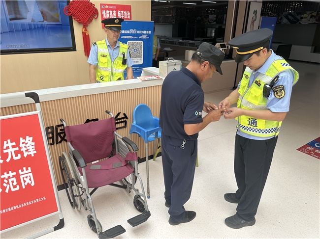 活动中,大队党支部精准落实便民服务,一方面在服务区出入口、停车区等高频停留点位,规范张贴国庆中秋江苏高速应急服务二维码,该二维码以动画短片形式讲解交通事故快处方法;另一方面,面向过往车主、旅客发放交通执法宣传材料60余份,现场细致解答“高峰时段避堵路线”“新能源汽车高速补能”等群众关切问题,为擦伤旅客提供应急包扎,党员志愿者用实际行动践行“为群众办实事”的承诺。