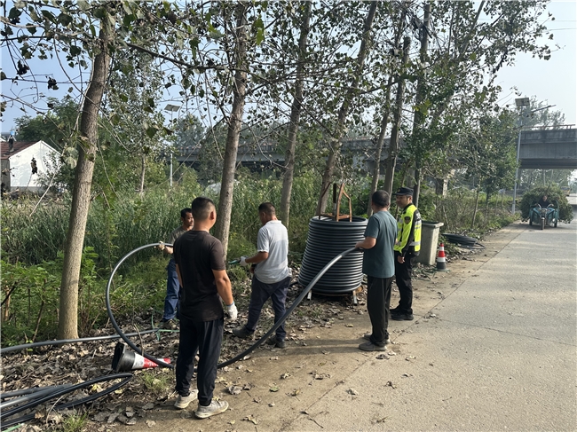 国庆中秋长假保通保畅关键时期,江苏省交通综合执法局徐盐支队第六大队执法人员在全力疏堵保畅的同时,未放松对辖区高速公路桥下空间的安全巡查与监管,成功发现并制止一起在高速公路桥下实施的非法穿越管线施工行为。