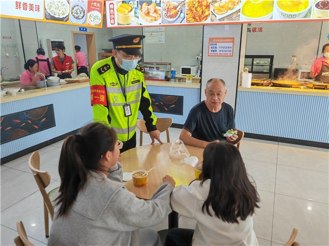 假日期间,服务区车流量大幅增加,交通疏导压力倍增。第六大队执法人员提前制定交通疏导方案,在服务区入口、出口及主要通道安排专人指挥,引导车辆有序进出和停放。对于一些不熟悉服务区布局的驾驶员,执法人员主动上前,耐心指引停车位置,避免车辆乱停乱放造成交通拥堵。同时加强对服务区的食品、饮用水和消防安全的监督工作。执法人员对服务区餐厅、超市等食品经营场所,开展食品和消防安全专项检查。仔细查看食品的生产日期和保质期等信息,确保食品质量有保障。对餐饮单位的食材储存、加工制作、餐具消毒等环节进行严格检查,要求餐饮单位严格按照食品安全操作规范操作,同时向驾乘人员了解对食品消费、价格质量等情况是否满意。
