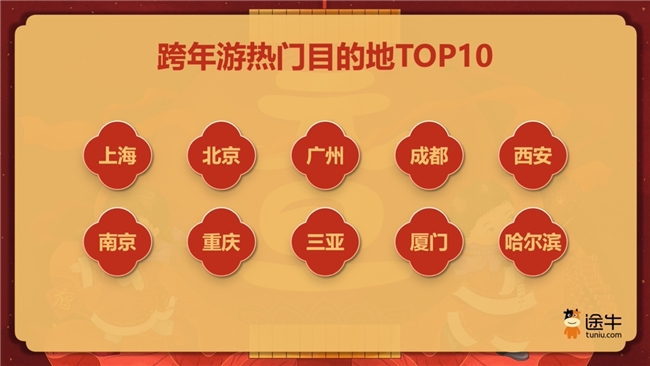 跨年游热门目的地中,上海、北京、广州、成都、西安、南京、重庆、三亚、厦门、哈尔滨等截至目前的预订热度排名靠前。