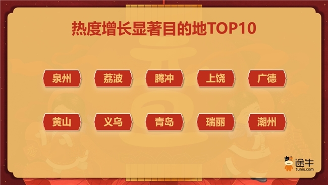 选择“就近跨年”的用户重点考虑在兼顾便捷性的同时体验节日氛围。此外,随着元旦假期的临近,一些“网红城市”及县域目的地的搜索及咨询热度也迎来了快速增长。泉州凭借簪花、古厝夜游、闽南小吃等元素吸引了更多年轻游客的青睐,近10日搜索及咨询热度环比增长超5倍;荔波、腾冲、上饶等目的地近10日搜索及咨询热度环比增长超3倍。位于江浙皖三省交界处的广德更因“广德三件套”——炖锅、奶茶、桃酥,近期在社交平台持续火爆,成为今冬旅游市场的“黑马”之一,元旦期间也将吸引不少游客专程前往打卡体验。