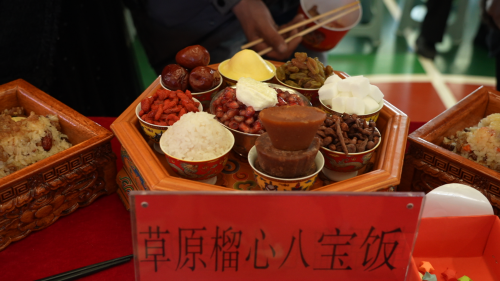 活动现场暖意融融、香气四溢。21道特色佳肴齐聚展台,既有蒙古族的“草原榴心八宝饭”“托德”,藏族“糌粑酥油奶茶”“阿卡包子”,也有“交融香搅团”“狗浇尿”油饼、大盘鸡等融合地方特色的美食,色泽诱人、风味独特,让各族群众大饱口福、赞不绝口。