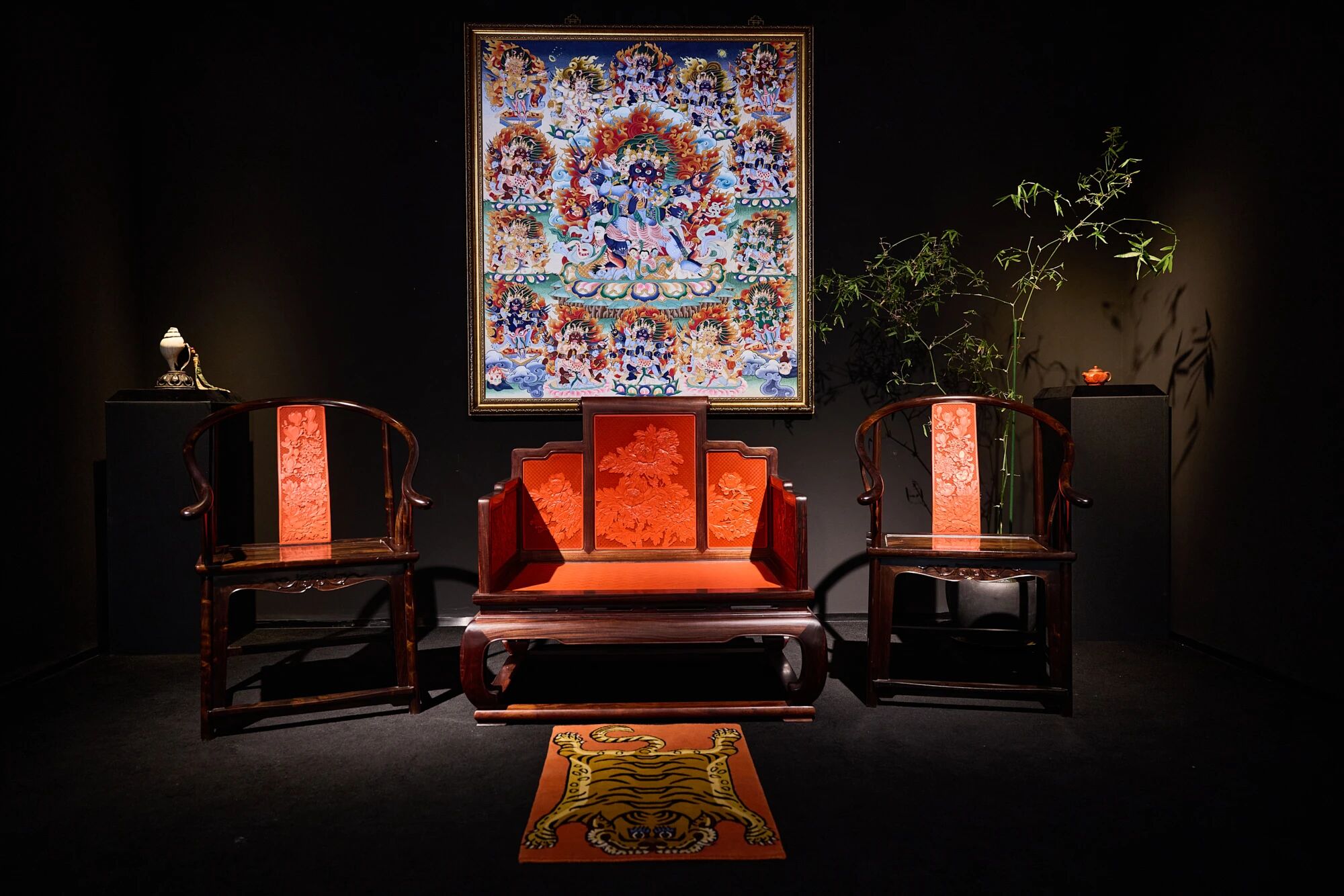 作为活动的“明星展品”,也是首次面向公众展示的国宝级刺绣唐卡,备受瞩目的焦点。这件作品堪称艺术与匠心的集大成者,拥有多重非凡价值:该作品源自尼泊尔殿藏珍品,3名核心弟子组成的“高定小组”历时1000多天匠心打造,作品突破了传统唐卡的材质与工艺界限,实现了卓越的融合创新。创作团队严格选用法国进口顶级丝线为核心材质,并创造性地融入了人类非物质文化遗产的针织花边刺绣工艺。以极致的纯手工制作闻名。正是这种对东西方顶级手工艺的完美融合,保留唐卡神圣的同时,焕发出前所未有的璀璨光泽与浮雕般的立体质感,以极致工艺诠释奢华刺绣的永恒标准。成为一件独特的艺术巨制。值得一提的是,这件凝结数世纪智慧与心血的艺术珍品,成为中尼友谊的重要见证。