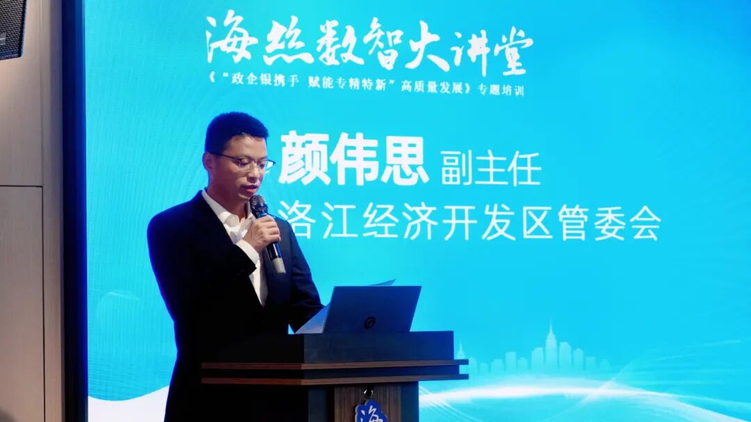 洛江经济开发区管委会副主任颜伟思在致辞中说:“今天我们搭建这个海丝数智大讲堂平台,核心就是践行‘政策汇聚·信用赋能·金融助力’的活动主题,把最实用的政策红利、最精准的金融服务、最专业的申报指导,直接送到企业身边。通过活动深化政企银三方合作,帮企业打通政策理解的堵点、破解融资对接的难点、消除信用赋能的痛点,共同培育更多专精特新企业,推动洛江经济开发区区域营商环境持续优化,形成产业集聚发展的良好态势。”